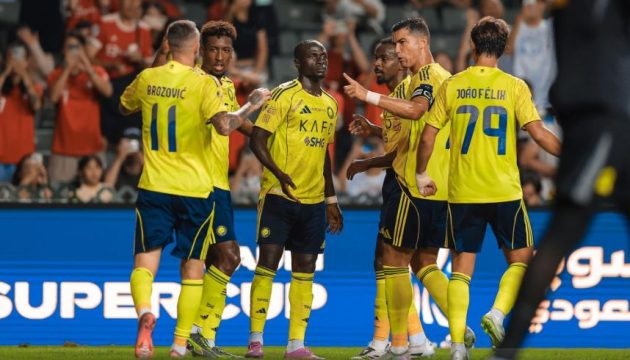 سجل خماسية النصر، البرتغالي جواو فيليكس (6 و 49) والفرنسي كينغسلي كومان (30) والبرتغالي كريستيانو رونالدو (33 و 76) ، بينما سجل هدف الرياض، السنغالي مامادو سيلا (51) .