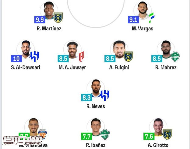 وتواجد في التشكيل سالم الدوسري قائد الهلال ورياض محرز جناح الأهلي ومصعب الجوير صانع ألعاب القادسية.