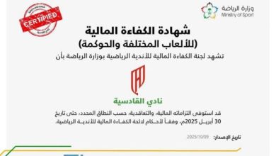 القادسية يحصل على شهادة الكفاءة المالية 13 أكتوبر 2025 ــ 12:35 ص | الخبر – عبدالرحمن السلطان حصلت شركة نادي…